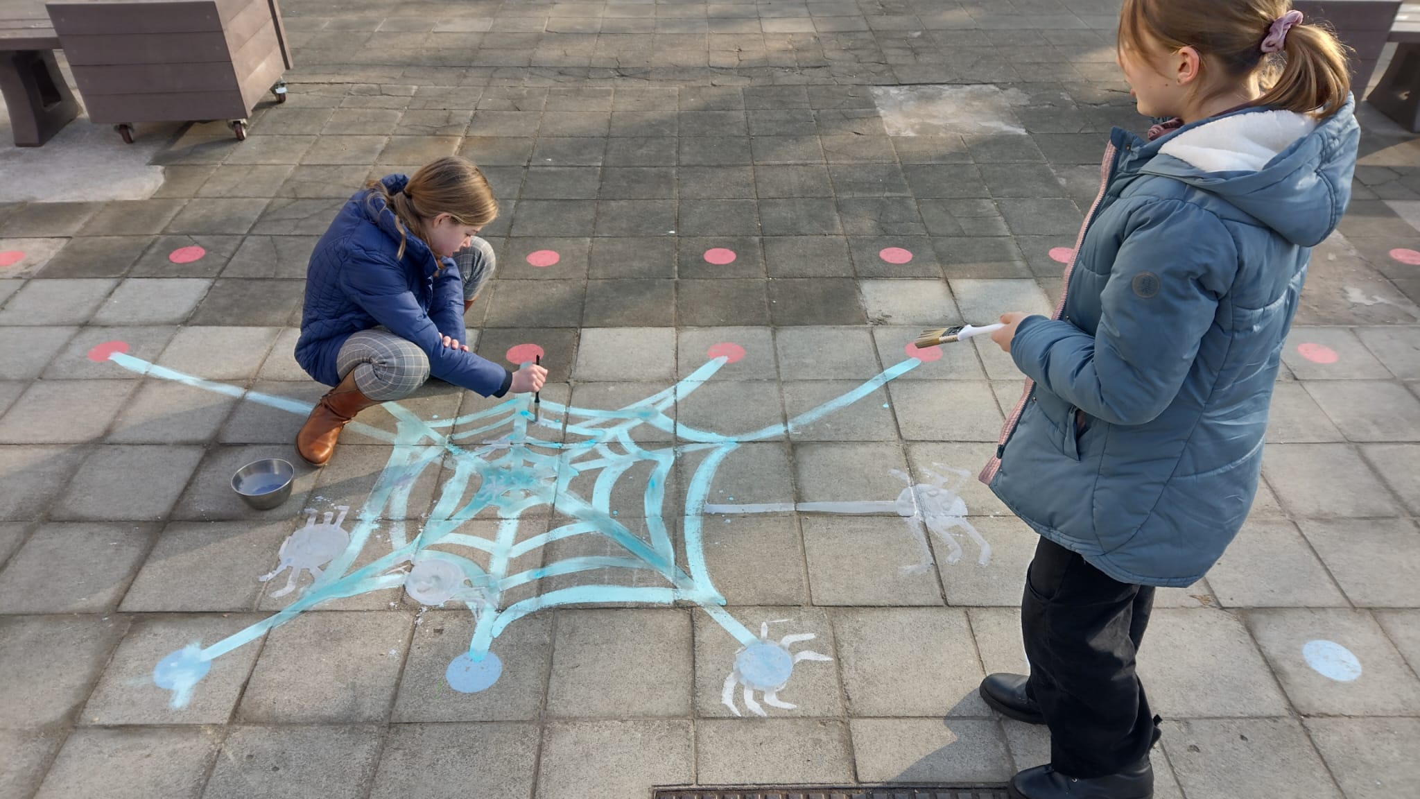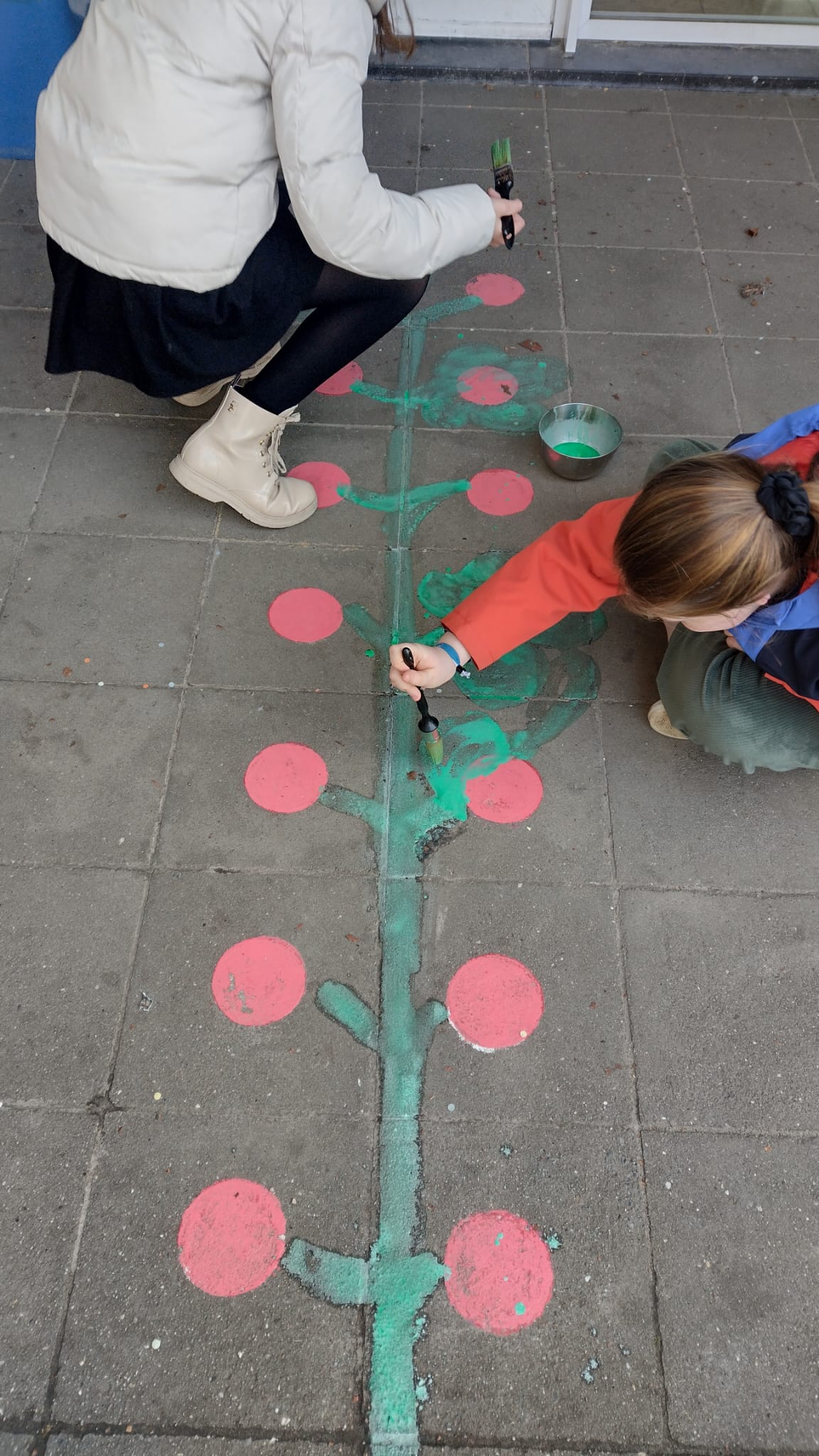 Als opwarming raken we eerst kort het ontstaan van street art aan en leren wat het verschil is tussen graffiti en street art. Dan worden de muren en de speelplaats onder handen genomen met behulp van krijtverf én de fantasie van de leerlingen!